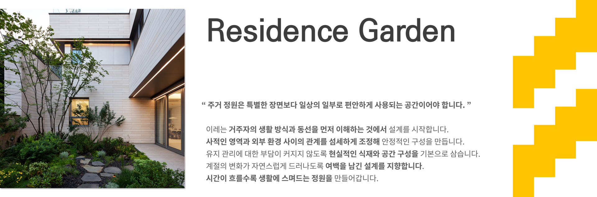 “ 주거 정원은 특별한 장면보다 일상의 일부로 편안하게 사용되는 공간이어야 합니다. ”
